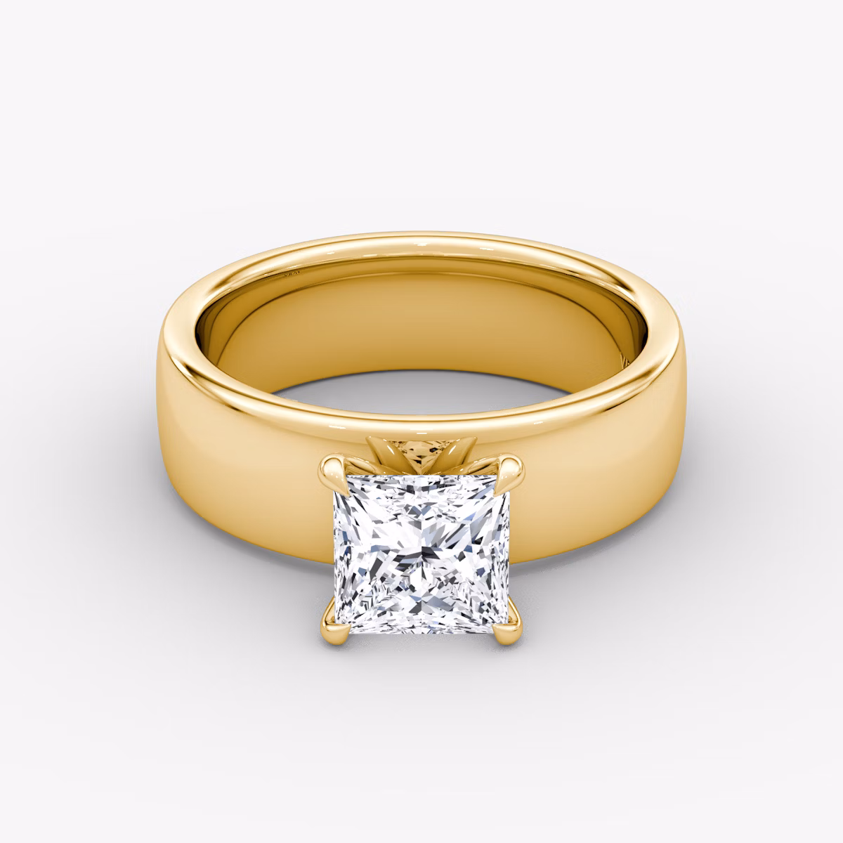 Cigar Band Solitaire solitaire in 18k yellow gold with a princess diamond