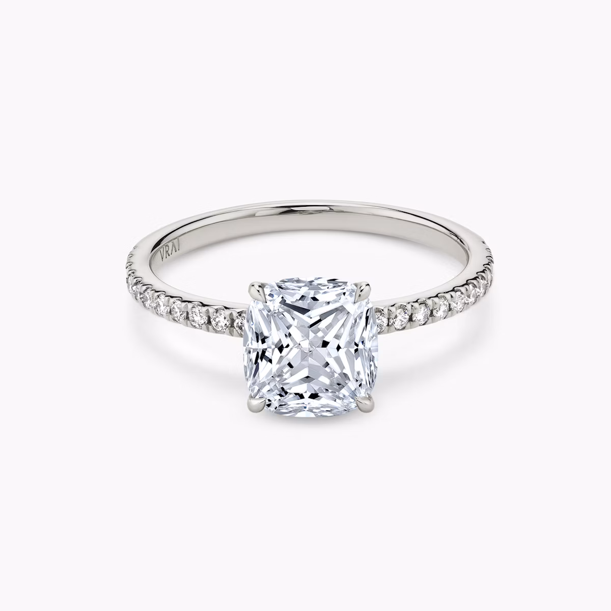 The Signature solitaire ring in 18k white gold with a cushion princess diamond
