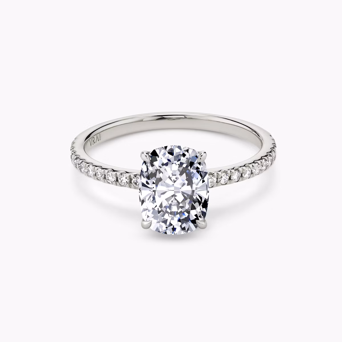 The Signature solitaire ring in platinum with a elongated cushion diamond