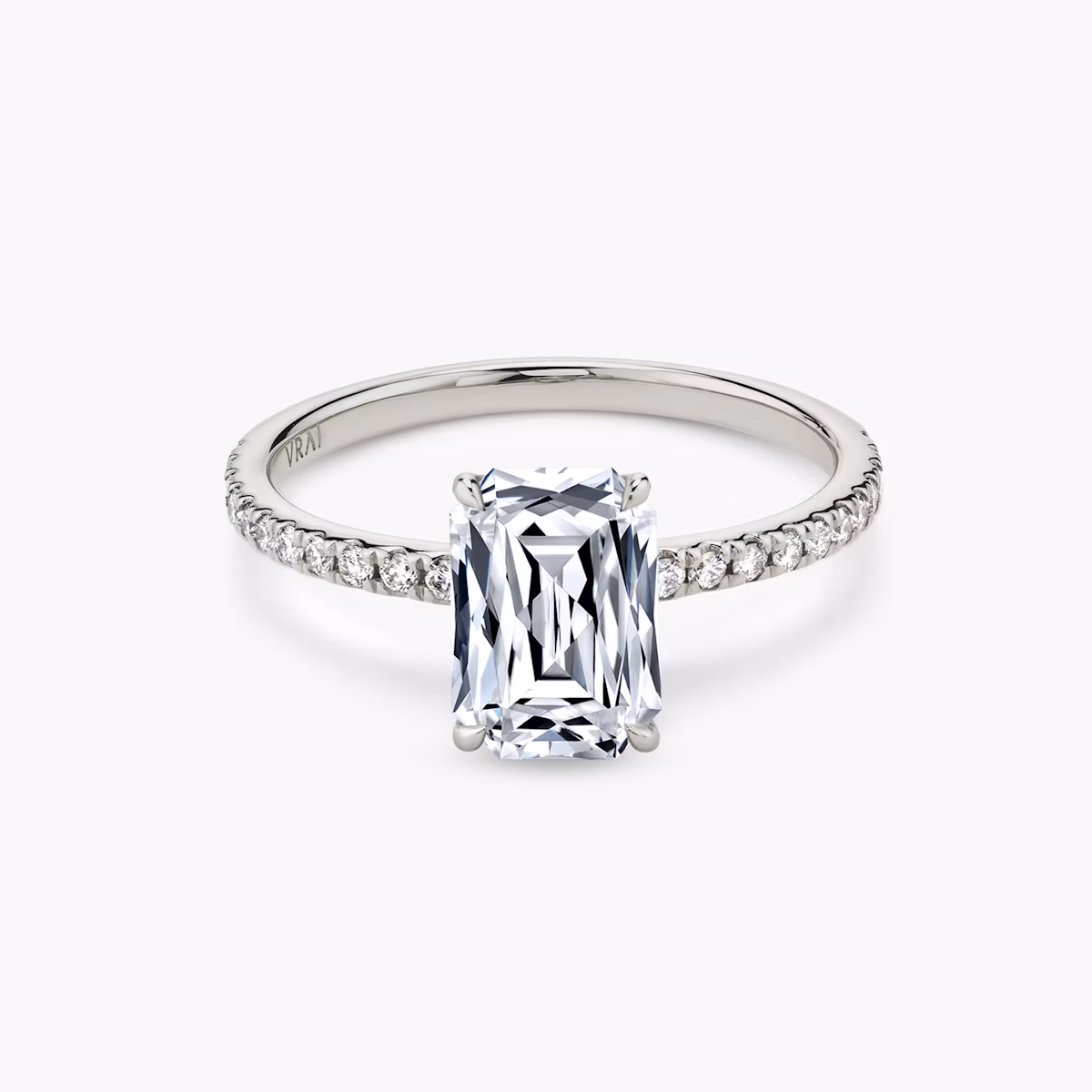 The Signature is our response to the enduring simplicity of a classic solitaire engagement ring. Designed to sit low on your finger and flush with your wedding band, our signature sling dips slightly below the band, drawing in light so your diamond shines bright.