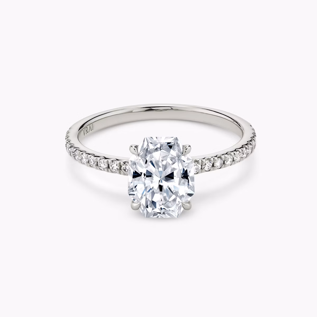The Signature is our response to the enduring simplicity of a classic solitaire engagement ring. Designed to sit low on your finger and flush with your wedding band, our signature sling dips slightly below the band, drawing in light so your diamond shines bright.