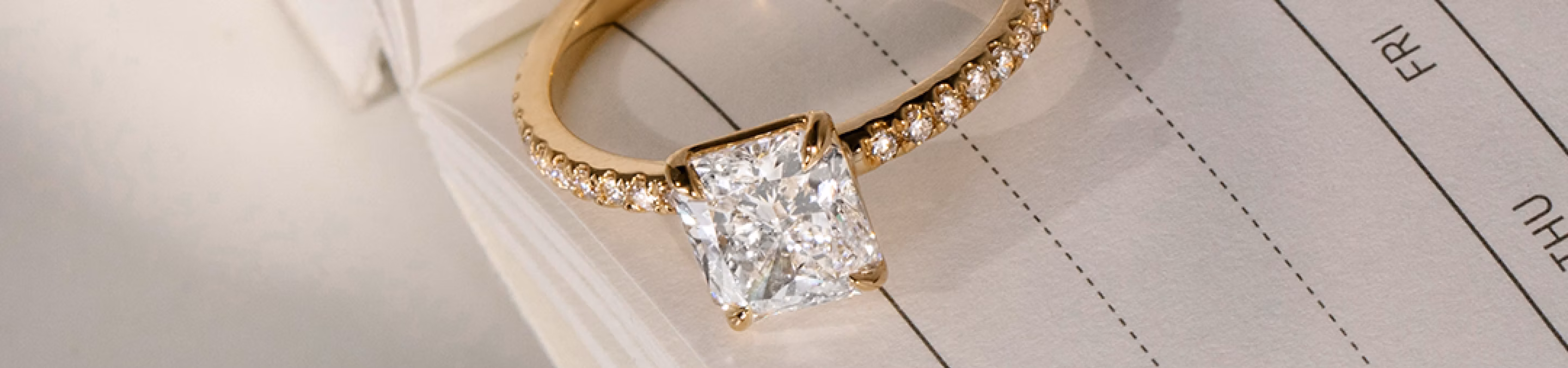 Whether you have a Princess cut solitaire, a three-stone ring, or one of the more metalwork-centric styles, this guide can help you choose the perfect wedding band. Book an appointment with our experts for a more detailed presentation of the styles and settings.